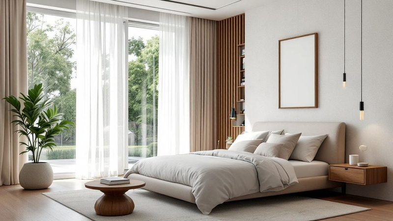 A bauhaus bedroom typically uses geometric, functional forms. Apply your chosen palette with the 60-30-10 rule: 60% dominant neutral on walls, 30% secondary shade on furniture and textiles, and 10% accent colour on decorative details. This creates a cohesive bauhaus feel while ensuring the space remains calm, restorative, and private.