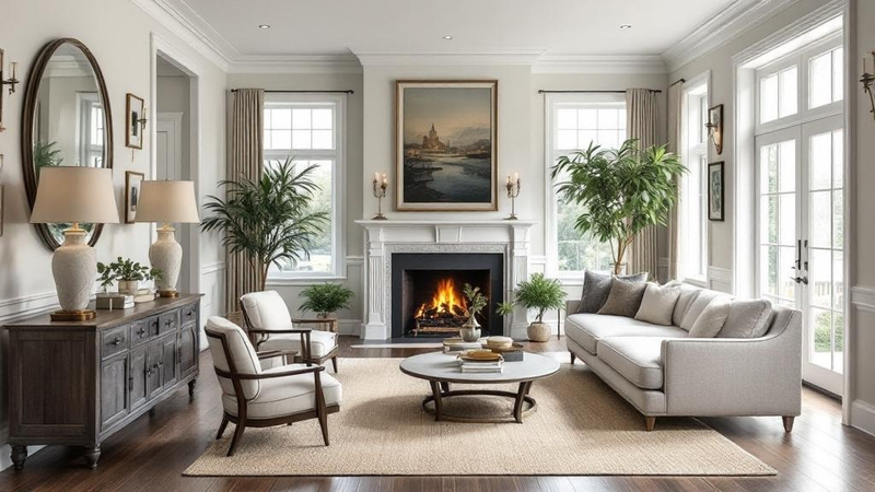 Complete your Colonial living room with accessories that solve accommodating both everyday comfort and guest entertaining. Consider shelving and decorative elements that add personality without compromising the style's core principles.