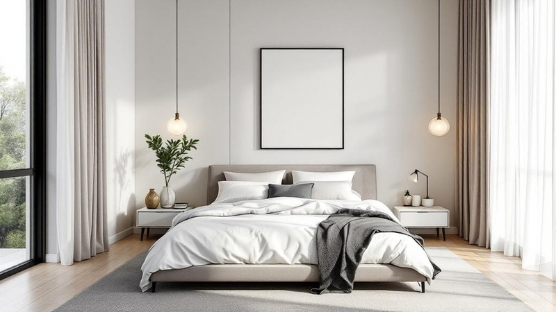 Add nightstands and dresser that reinforce the Minimalist aesthetic. Look for pieces with monochromatic colour schemes to build visual cohesion.