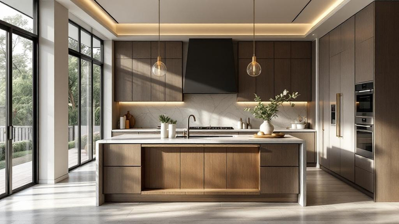 Add island or breakfast bar and countertops that reinforce the Quiet Luxury aesthetic. Look for pieces with understated, logo-free elegance to build visual cohesion.